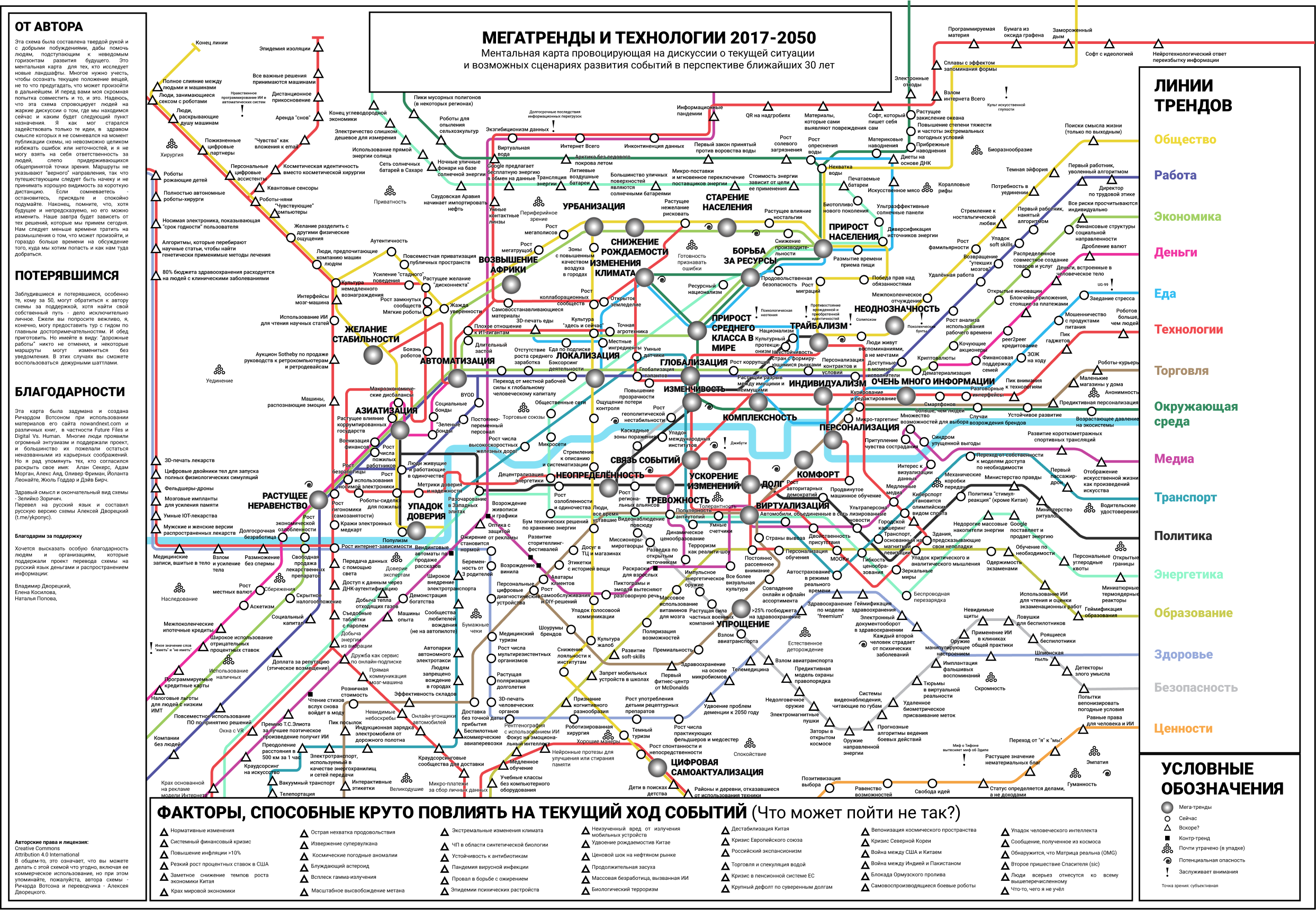 Впервые эту карту я увидела в 2015 году на обучении. Это была лекция про тренды. Я вернулась домой и на несколько часов "залипла" в ее изучении. Это же так удивительно - смотреть в будущее, а что если это оно, что тогда? Я даше читала лекции и пыталась "ванговать" по этой карте, интерпретирую то, что я вижу.