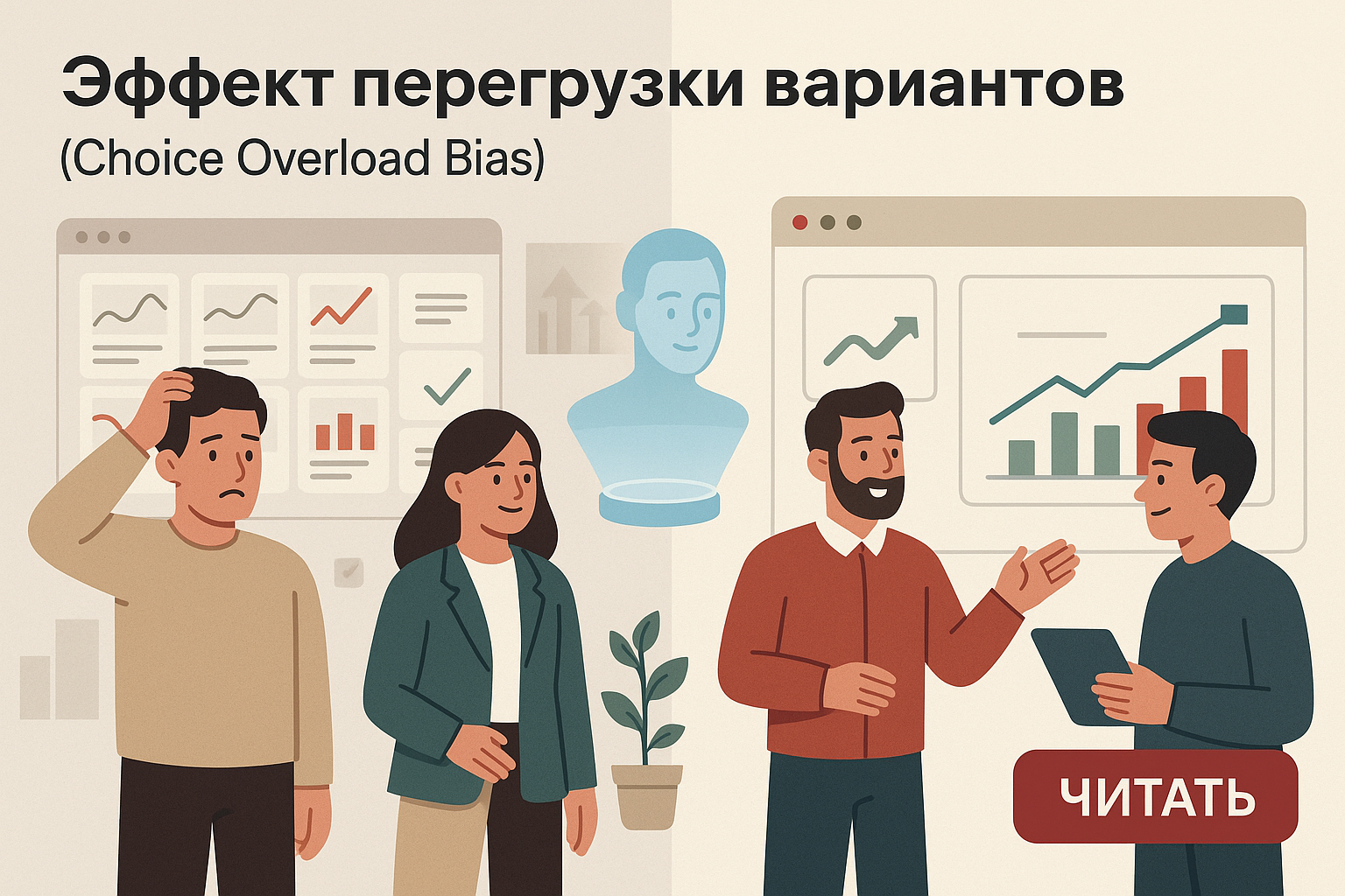 Эффект перегрузки вариантов — это когнитивное искажение, при котором избыточное количество вариантов затрудняет процесс принятия решения. Исследования показывают, что, когда люди сталкиваются с большим количеством опций, они становятся менее довольными своим выбором и чаще испытывают сожаление о сделанном выборе.