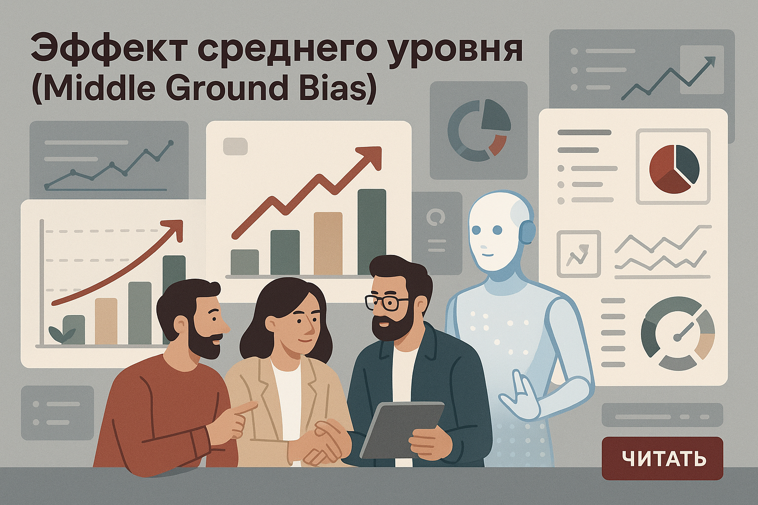 Эффект среднего уровня — это тенденция воспринимать средние решения или позиции как более разумные и правильные, чем крайние варианты. Это искажение может быть объяснено стремлением людей избегать крайностей и искать компромиссы, что делает их более комфортными в социальной среде. Механизм этого эффекта заключается в том, что люди стремятся избегать конфликтов и выбирают решения, которые кажутся более сбалансированными.
