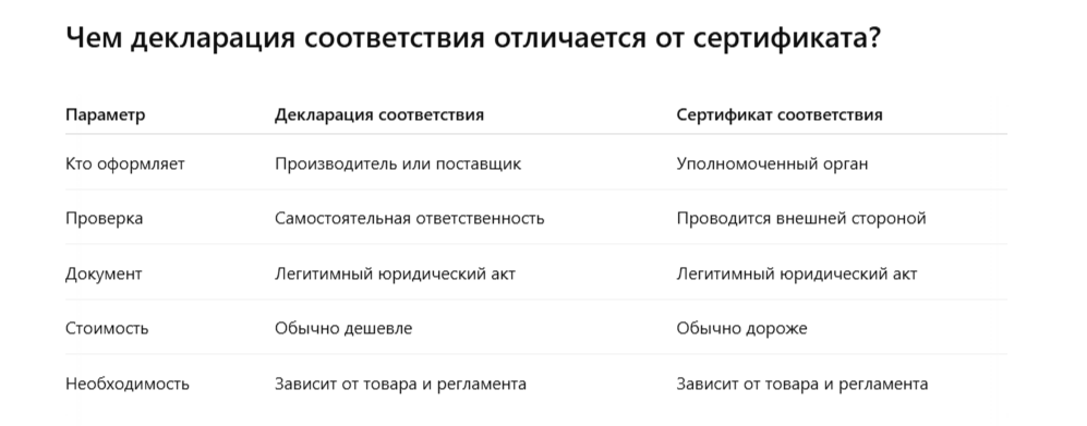 Важно: декларация имеет ту же юридическую силу, что и сертификат, но отличается процедурой оформления.
